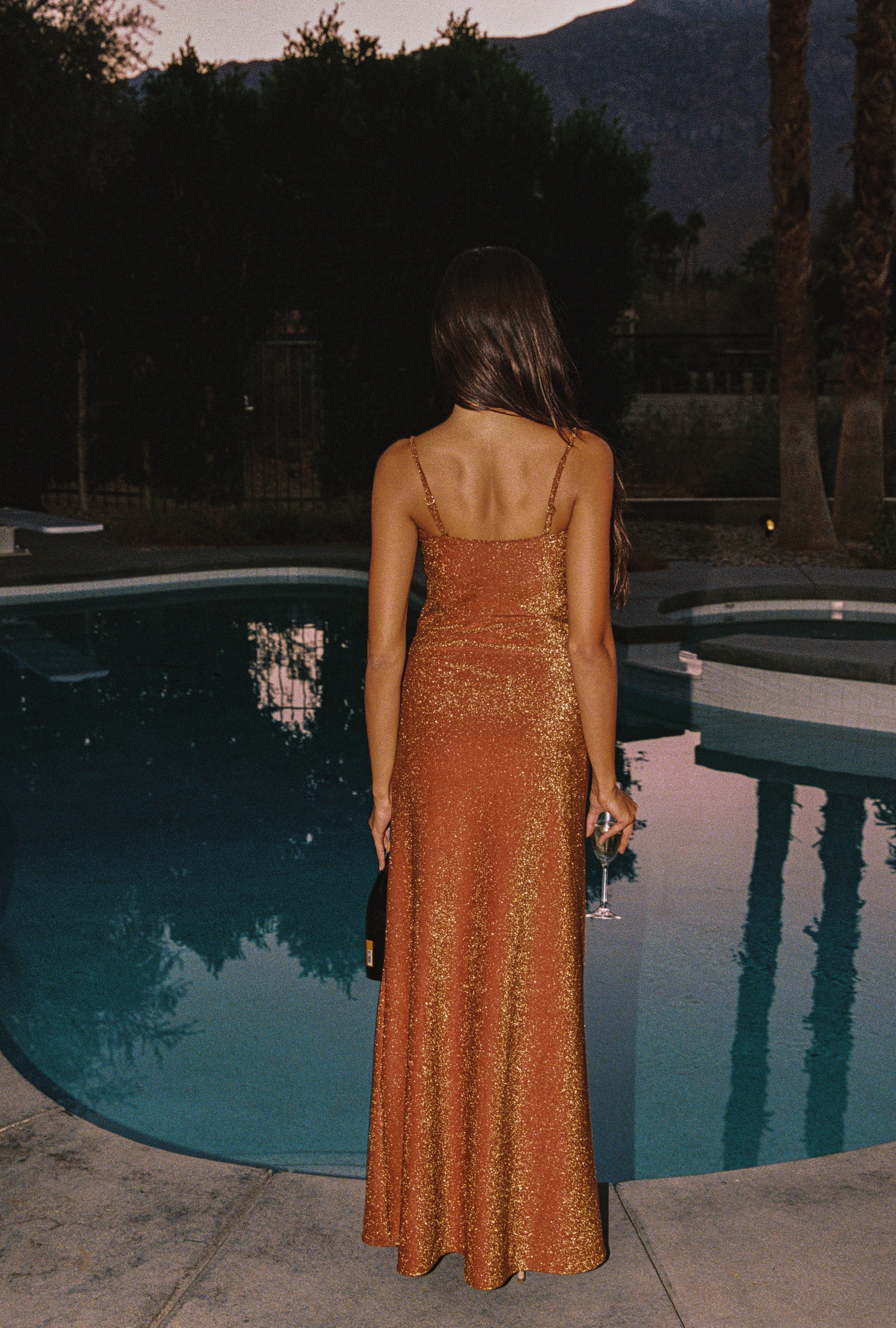 Elevate your resort wear with the Raquel Dress. This is the sparkle dress of your dreams! It is crafted from high-end Italian lurex fabric, and lined with lycra for added comfort. This dress is the ultimate unique look. The straps are adjustable and removable as well.