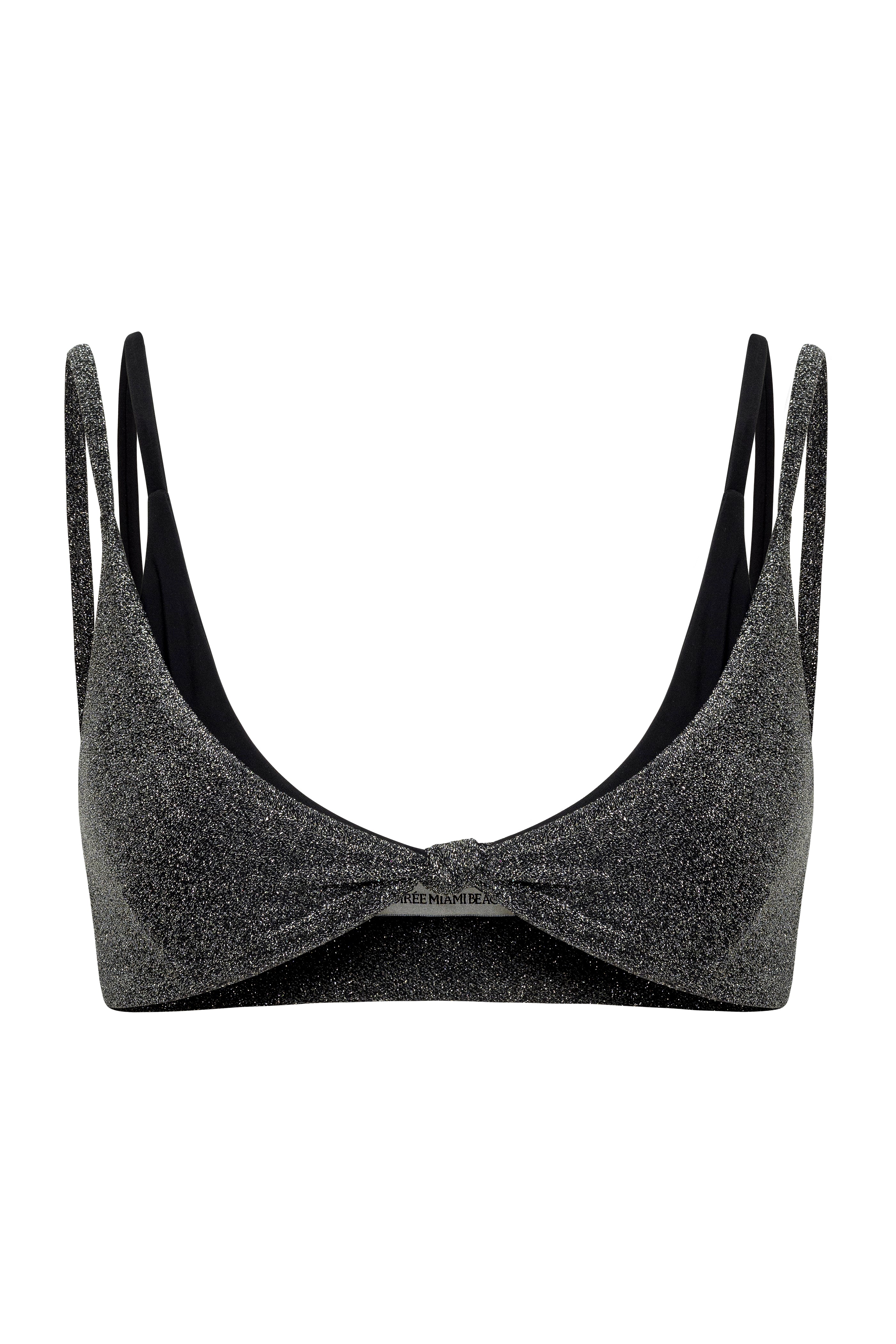 The Annika Bikini Top embodies effortless, cool-girl chic with its unique double-layered design. Built in with a sleek black lycra underlayer and a shimmering Italian lurex top layer, it creates the look of stylish swimwear layering without the fuss. The soft, supportive fit and subtle center twist make it the perfect blend of trend-forward design and timeless Soirée sophistication. Pair with the Annika Bottom or any black Soirée bottom for a seamless, elevated set.
