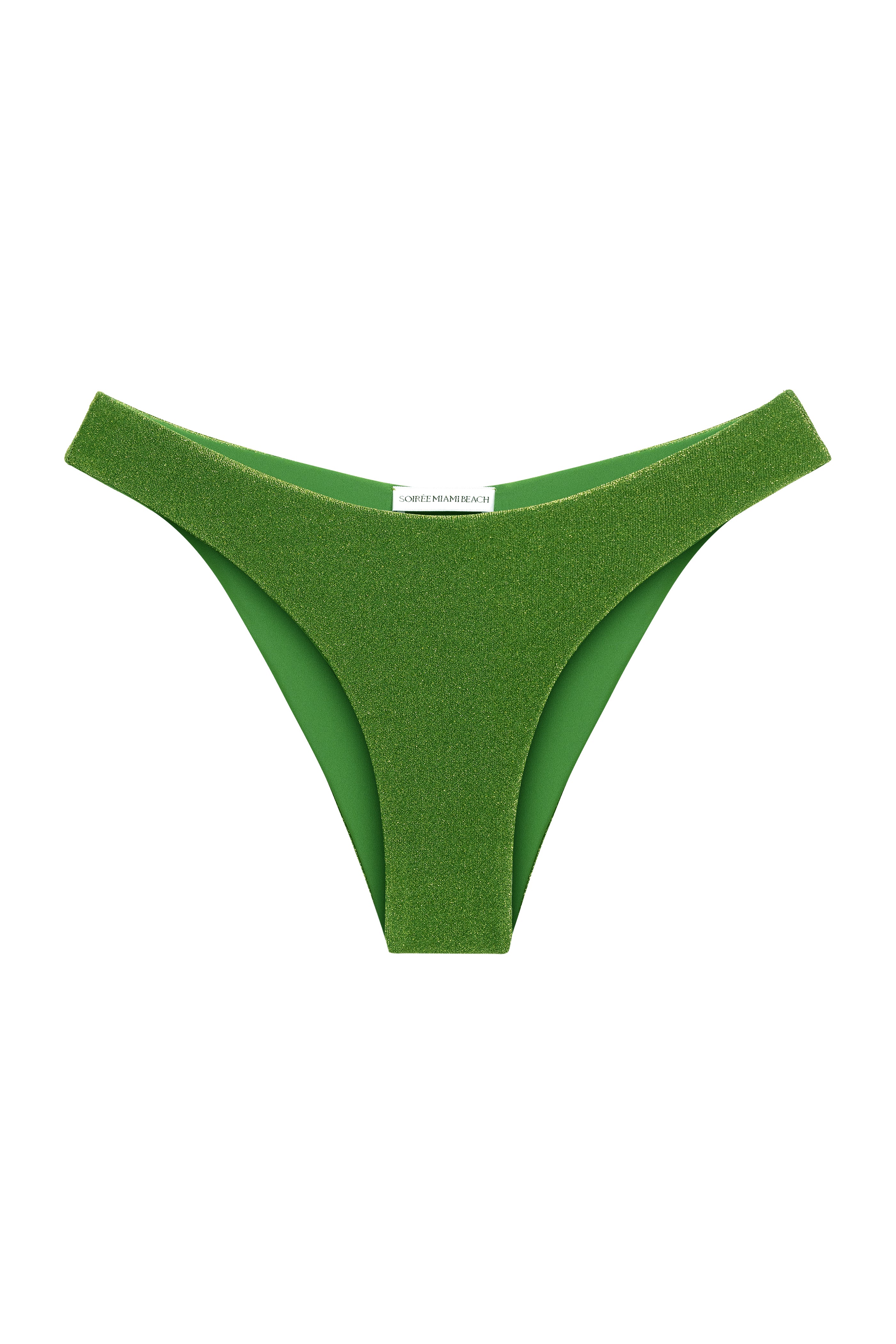 Introducing the Gigi Bikini Bottom: Your ideal bottom for a chic medium coverage look. It is crafted from high-end Italian lurex fabric, and lined with lycra for added comfort. This is the perfect addition to your vacation wardrobe. Pairs perfectly with the Gigi Bikini Top or the Becca Bikini Top.