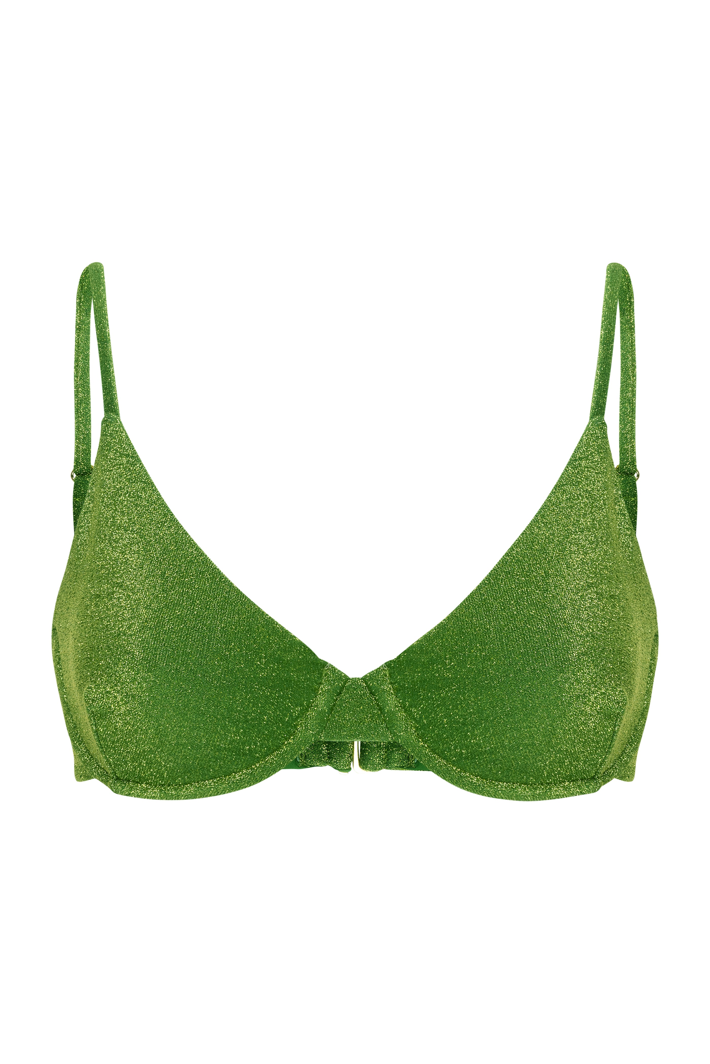 Introducing the Gigi Bikini Top: The underwire bikini top of your dreams. It features an elegant gold clasp detailing on the back and adjustable straps for a customizable fit. Crafted from high-end Italian lurex fabric, the Gigi ensures comfort and style all day long ensuring you make a striking statement. This top empowers you to confidently conquer your beach or pool day.