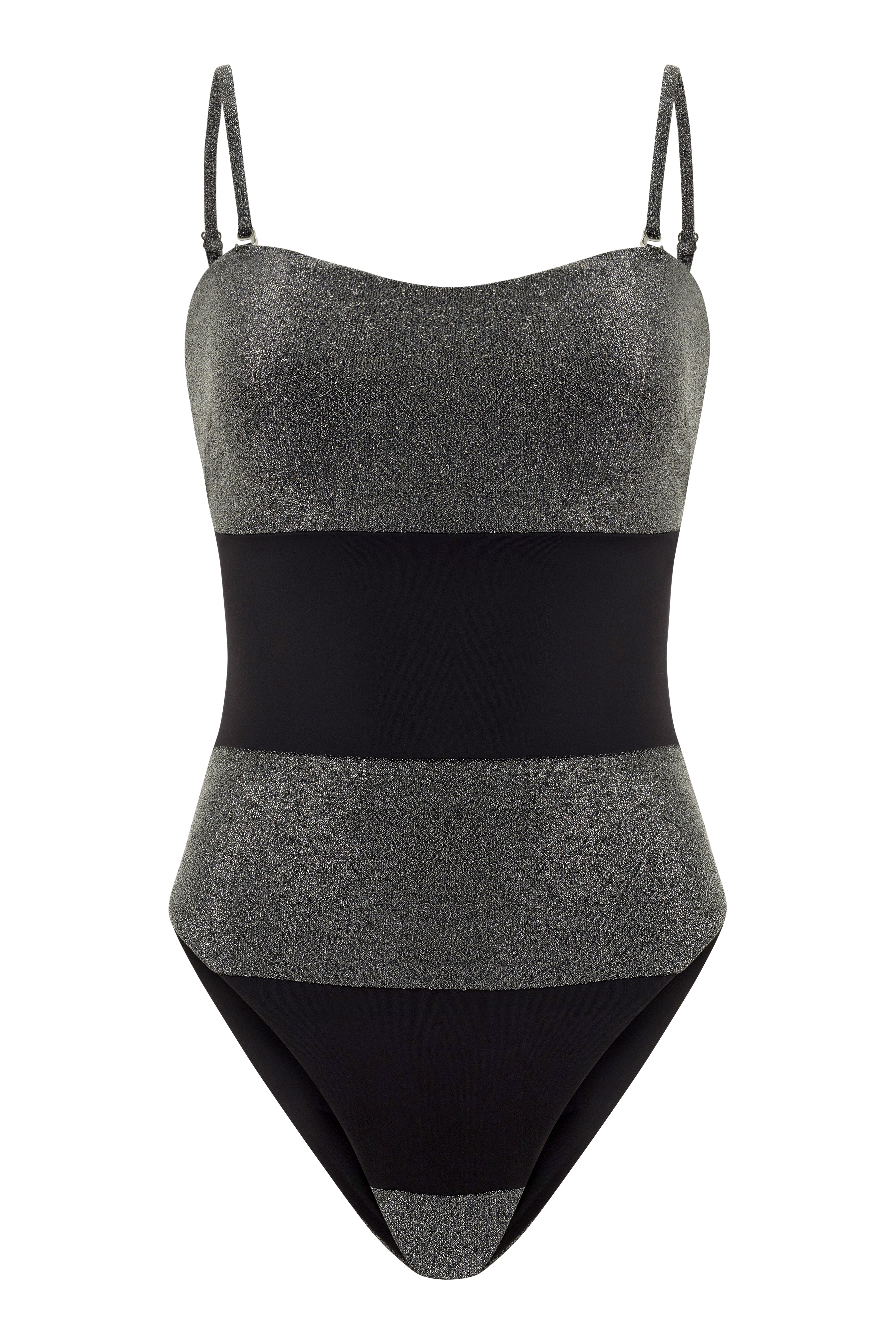 Elevate your beachware with the Lola Swimsuit. This is the striped swimsuit of your dreams! It is crafted from high-end Italian lurex fabric, and lined with lycra for added comfort. This one-piece rotates stripes with lurex and lycra for a sophisticated, unique look. The straps are adjustable and removable as well. Can also be worn as a body suit as well as a swimsuit. This style elevates any look from day to night.