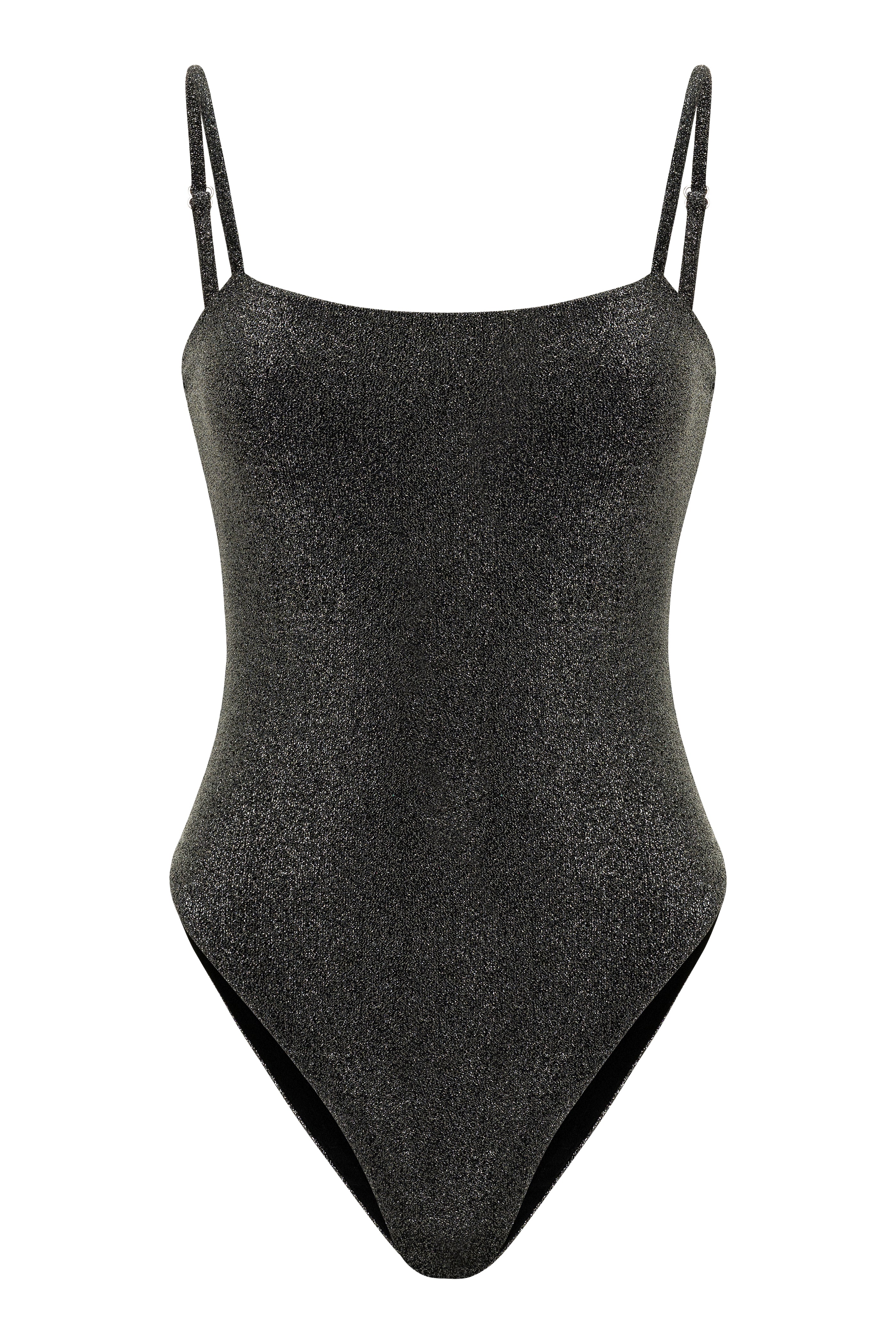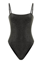 Introducing the Mia One Piece: The ultimate swimsuit you've been searching for. This high-waisted one-piece offers medium coverage, with adjustable straps for the perfect fit. This swimsuit is very versatile and can be worn as a bodysuit as well. It is crafted from high-end Italian lurex fabric, and lined with lycra for added comfort, making it the perfect addition to your vacation wardrobe. Elevate your swimwear collection with the Mia One Piece, a must-have staple piece.